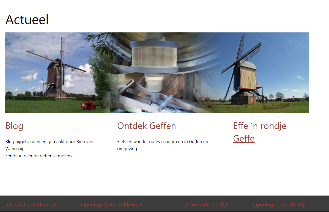 Met trots delen we het verhaal achter de creatie van de Geffense Molens-website. Het begon allemaal toen Molen de Vlijt en Molen de Zeldenrust samensmolten tot één stichting. Ik heb het genoegen gekregen om betrokken te zijn bij het ontwikkelen van de website voor deze bijzondere molens.